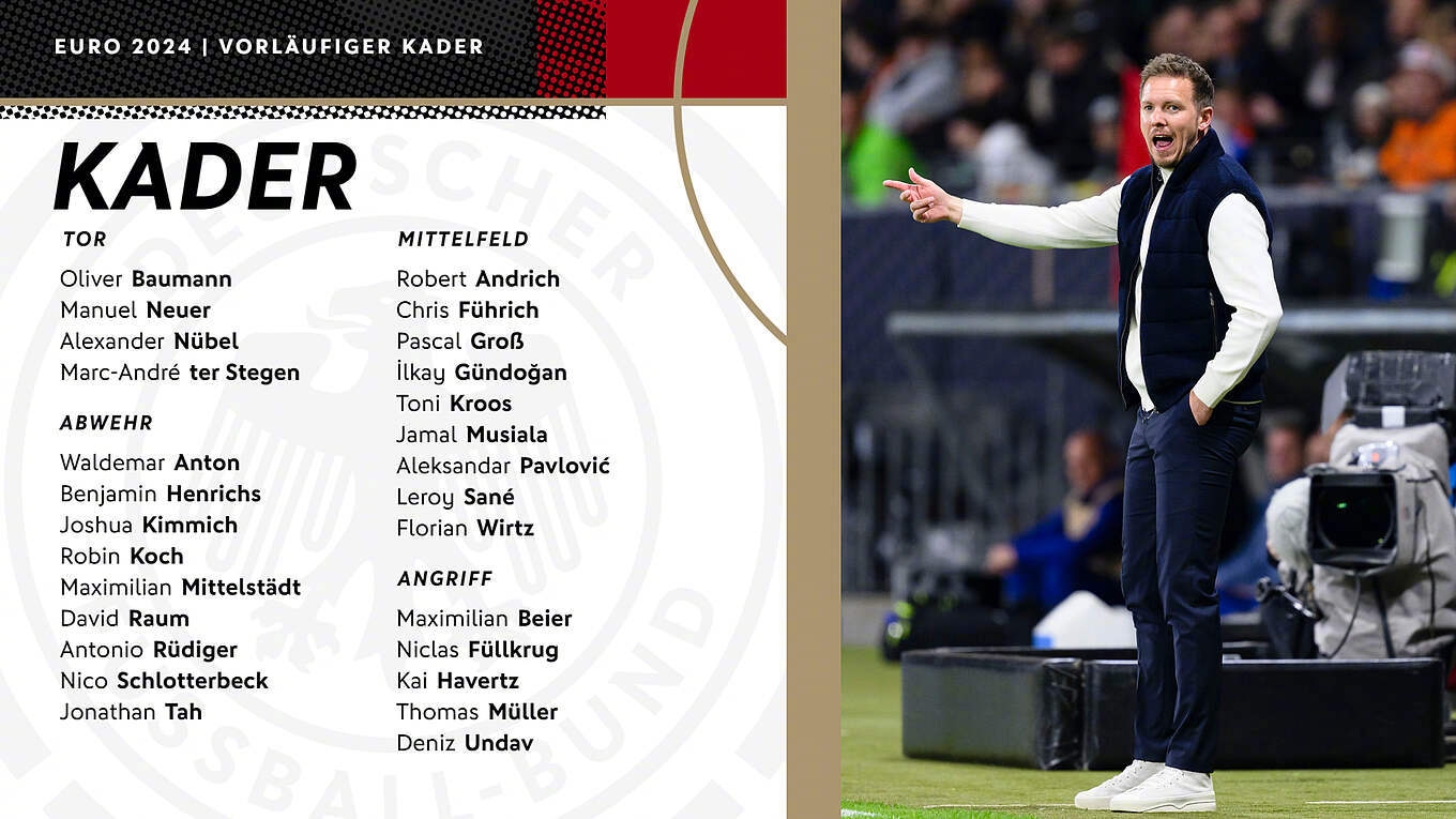 德国队的27人名单中涵盖了众多实力选手,其中包括诺伊尔、克罗斯等国家队的常客。然而随着最终名单的公布日益临近,科赫和拜尔的处境仍不明朗,他们将面临落选的风险。
